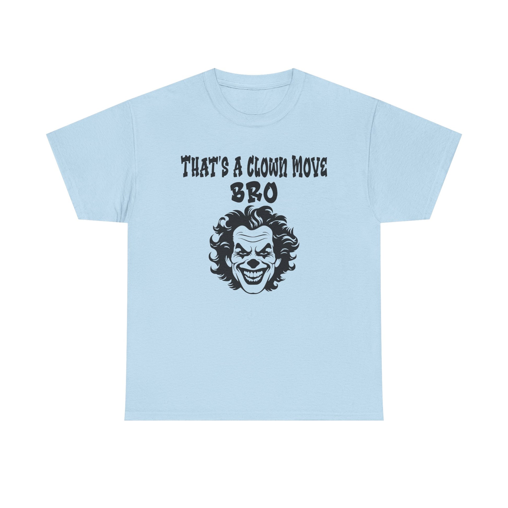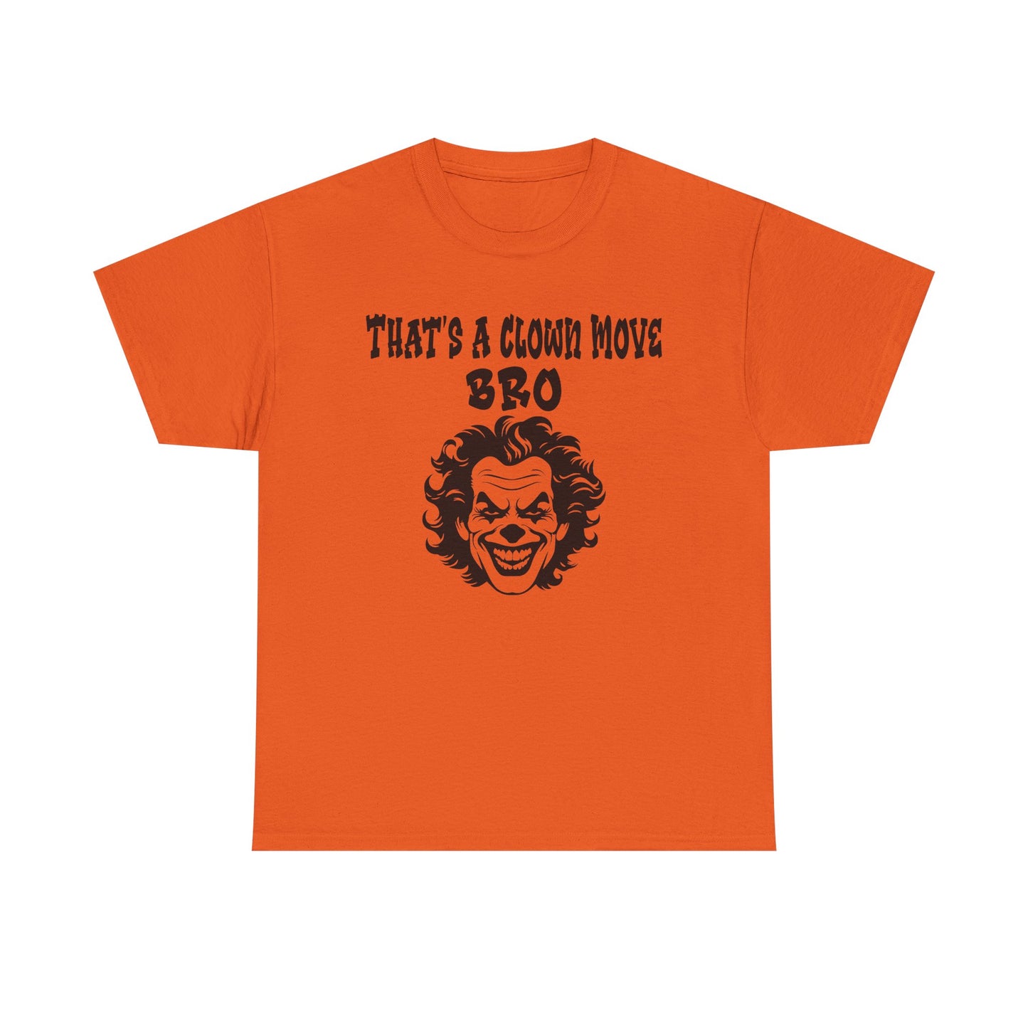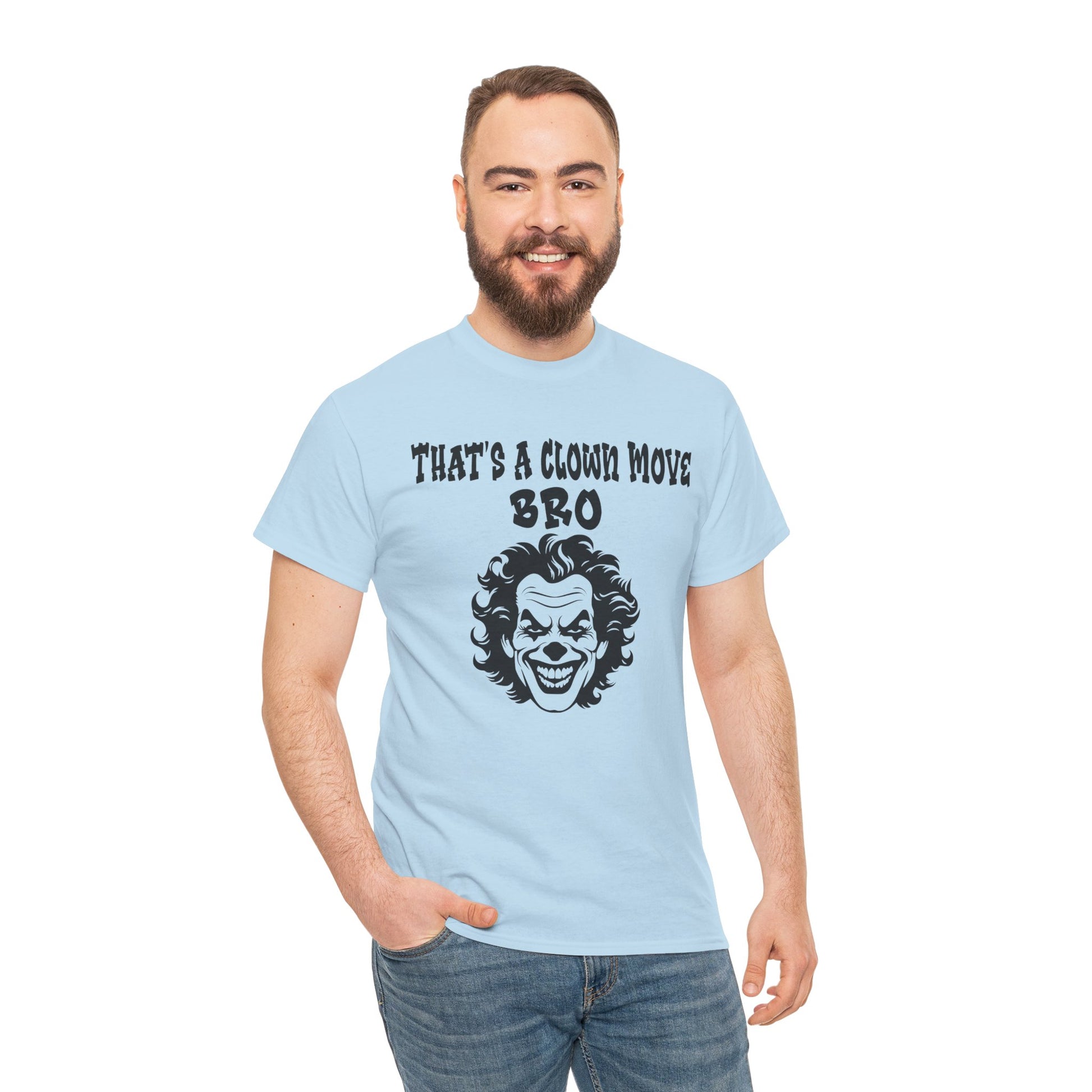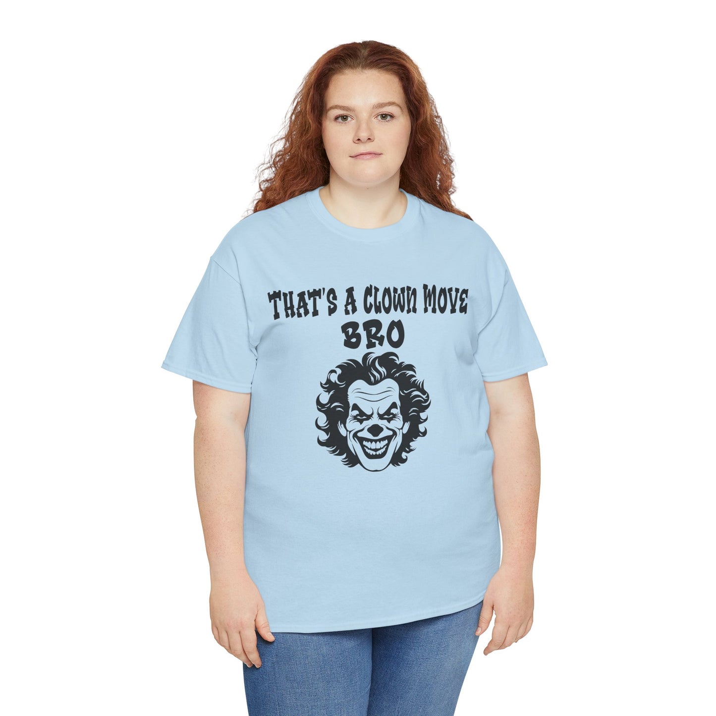 Introducing our Unisex Heavy Cotton Tee, designed for effortless style and ultimate comfort. This classic fit tee radiates a laid-back vibe, making it the perfect wardrobe staple for any casual occasion. Whether you're lounging at home, meeting friends, or heading to an event, this tee effortlessly blends into your lifestyle. Ideal for adults who appreciate quality and creativity, it’s a great gift for birthdays, holidays, or simply to treat yourself. Celebrate individuality with this unique shirt that captures your personality while ensuring you stay comfortable all day long! That's A Clown Move Bro Tee for Humor Lovers