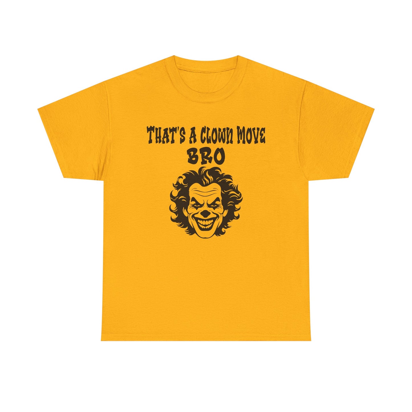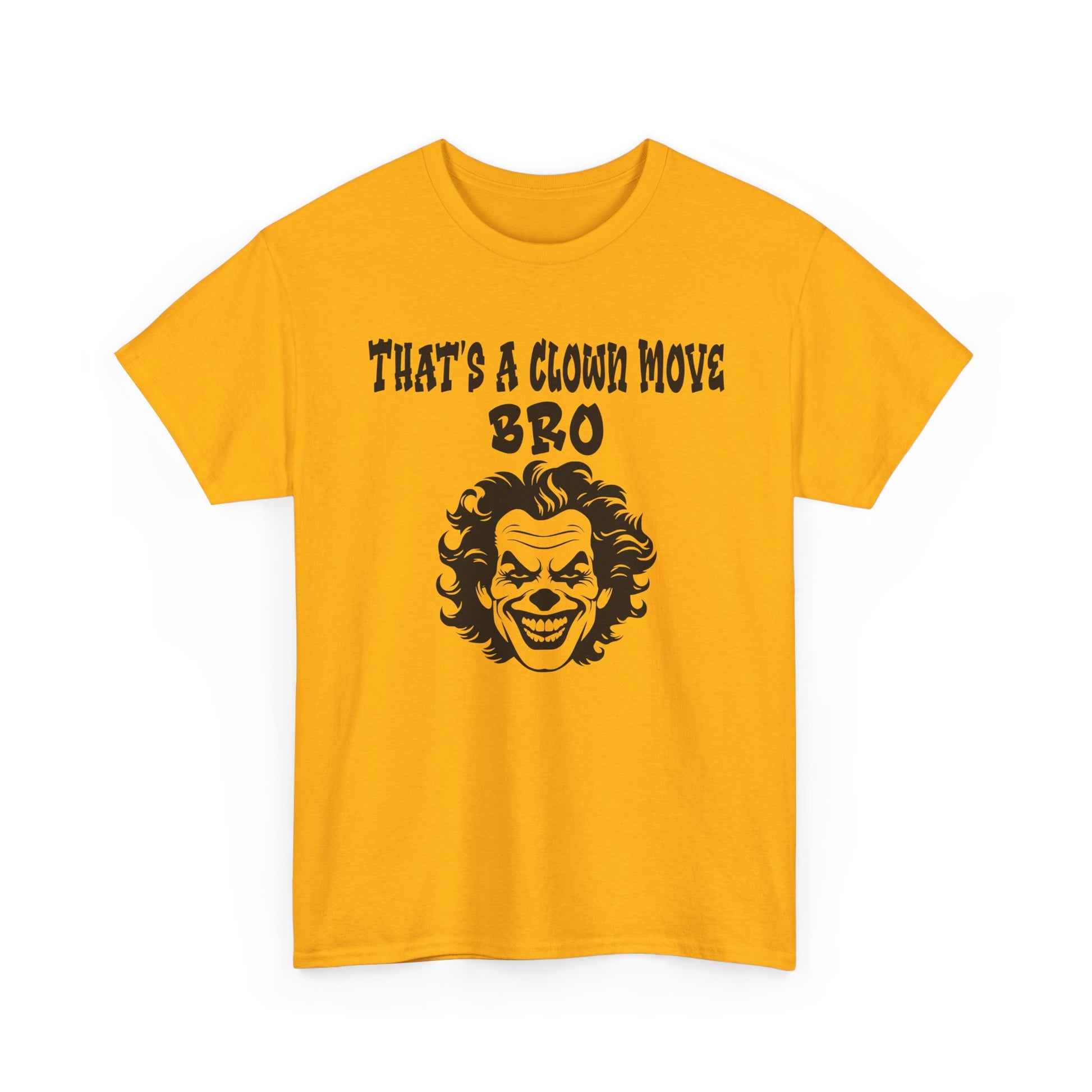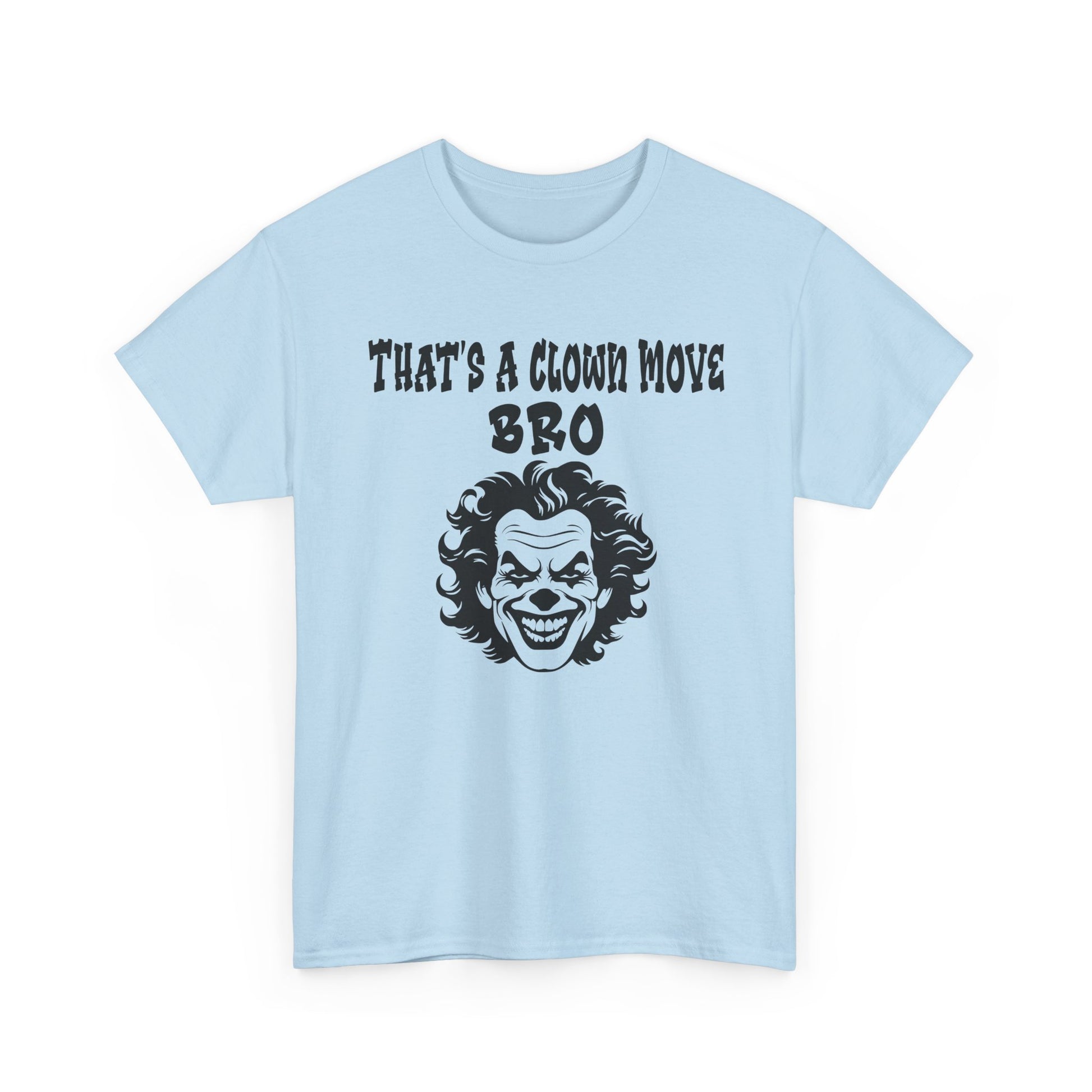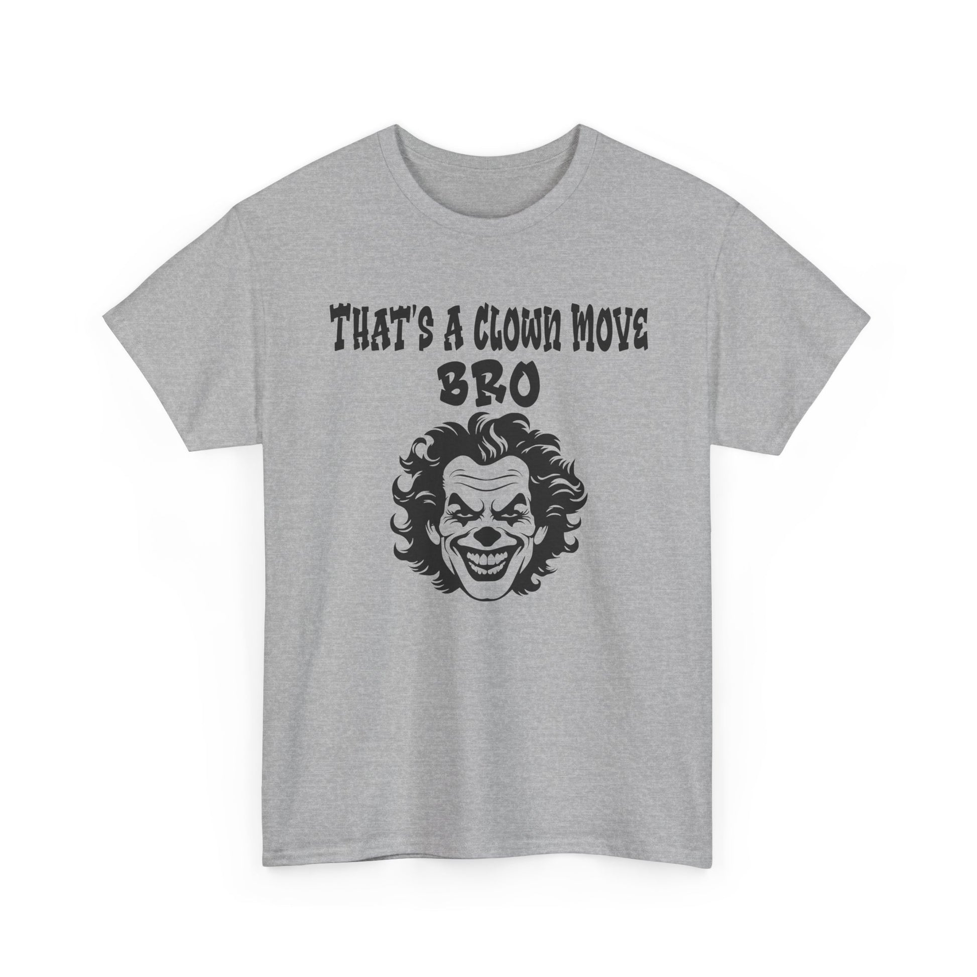 Introducing our Unisex Heavy Cotton Tee, designed for effortless style and ultimate comfort. This classic fit tee radiates a laid-back vibe, making it the perfect wardrobe staple for any casual occasion. Whether you're lounging at home, meeting friends, or heading to an event, this tee effortlessly blends into your lifestyle. Ideal for adults who appreciate quality and creativity, it’s a great gift for birthdays, holidays, or simply to treat yourself. Celebrate individuality with this unique shirt that captures your personality while ensuring you stay comfortable all day long! That's A Clown Move Bro Tee for Humor Lovers