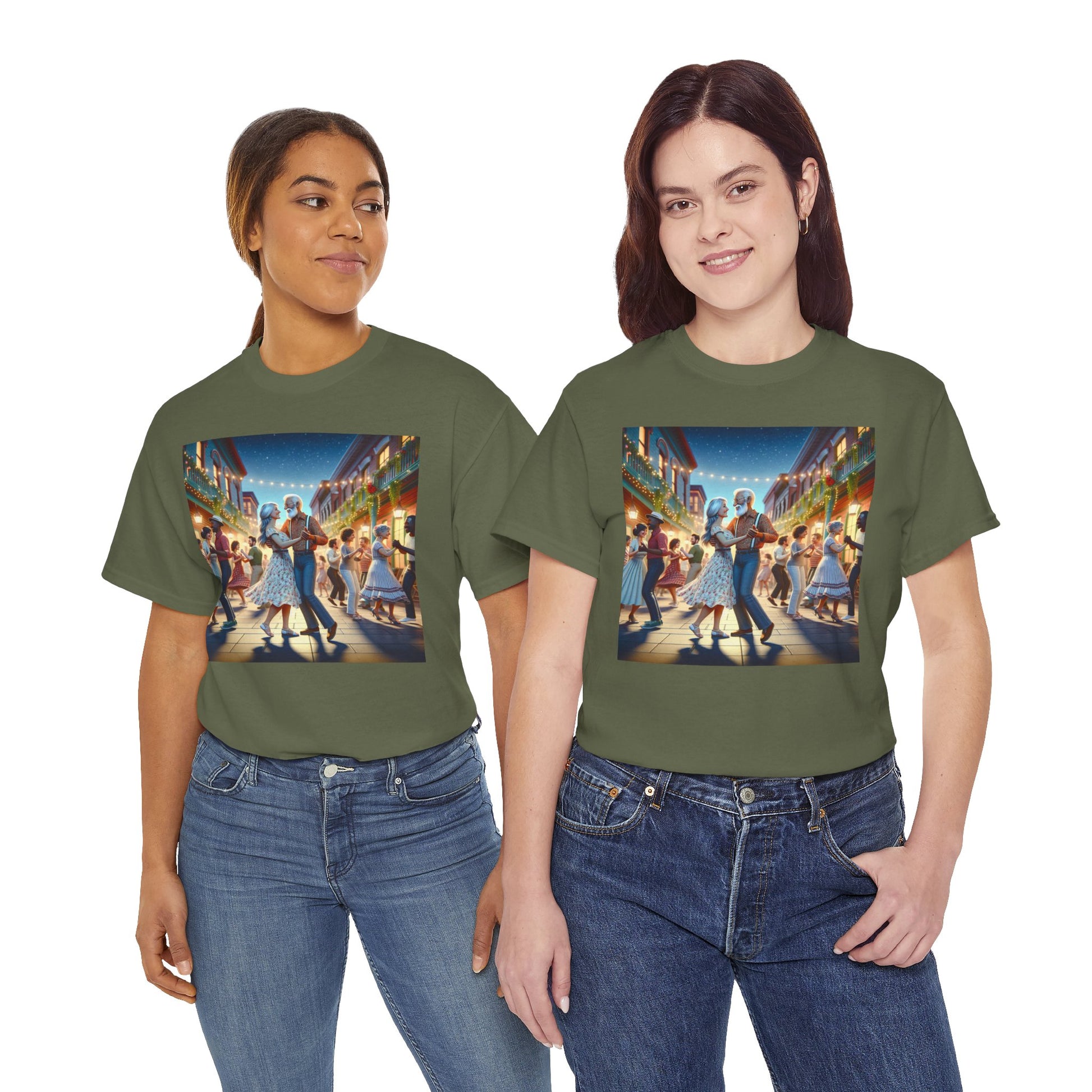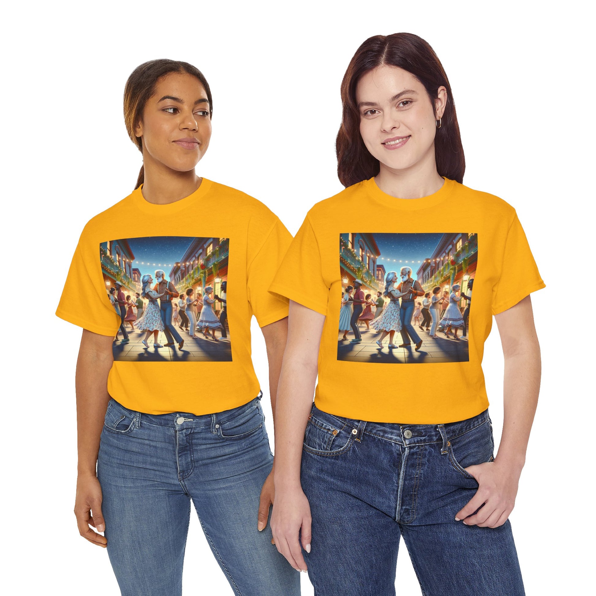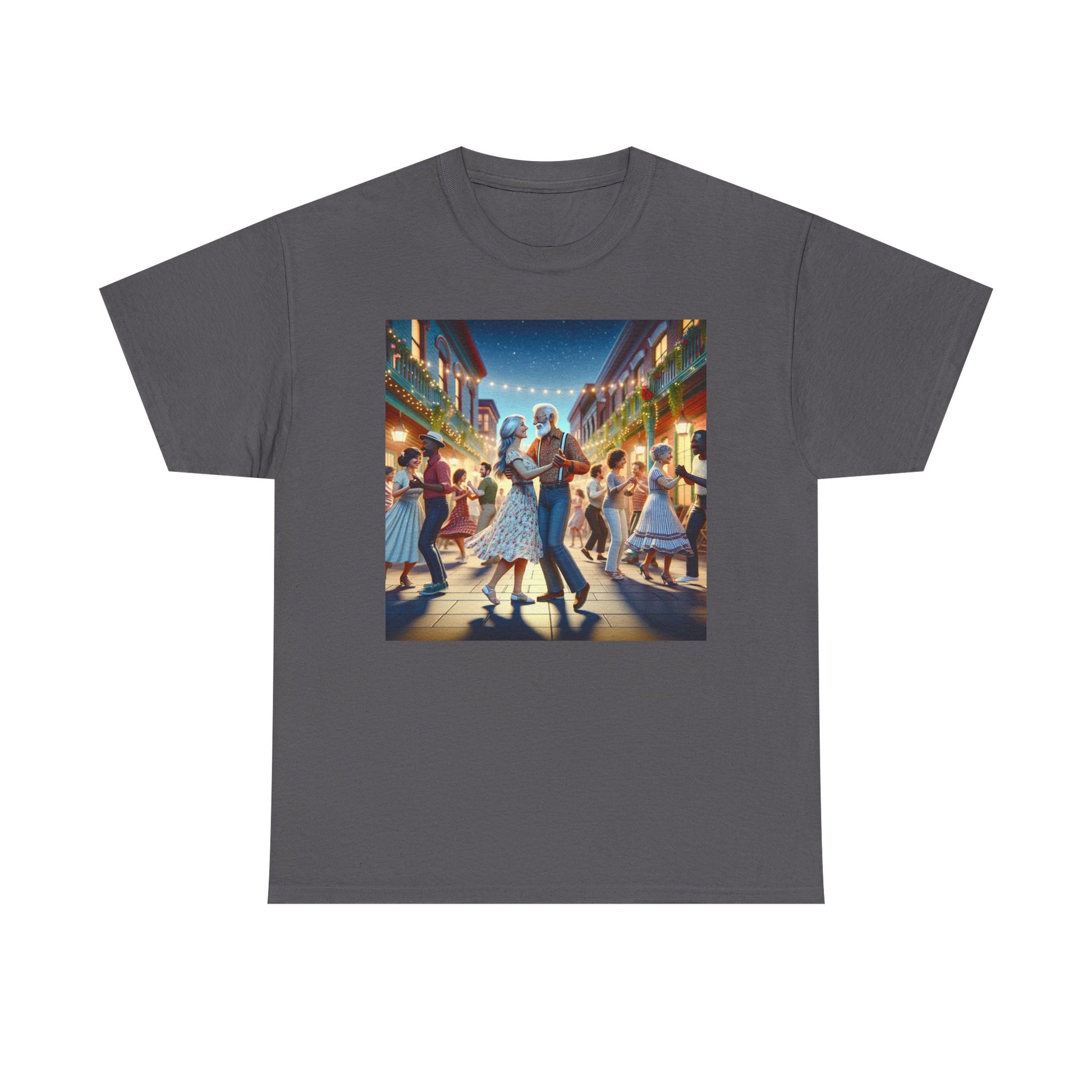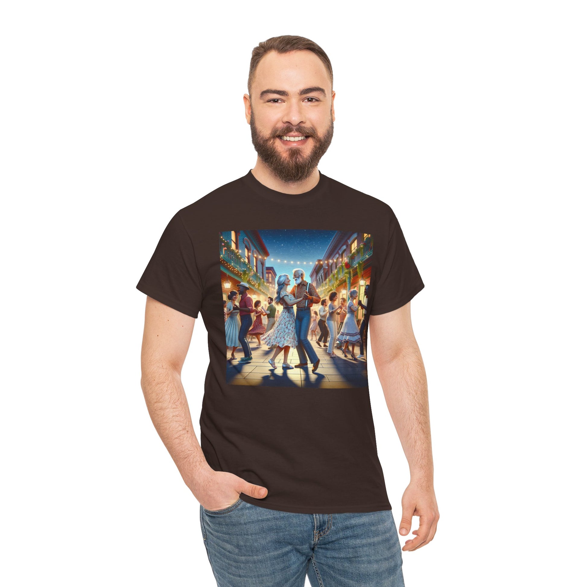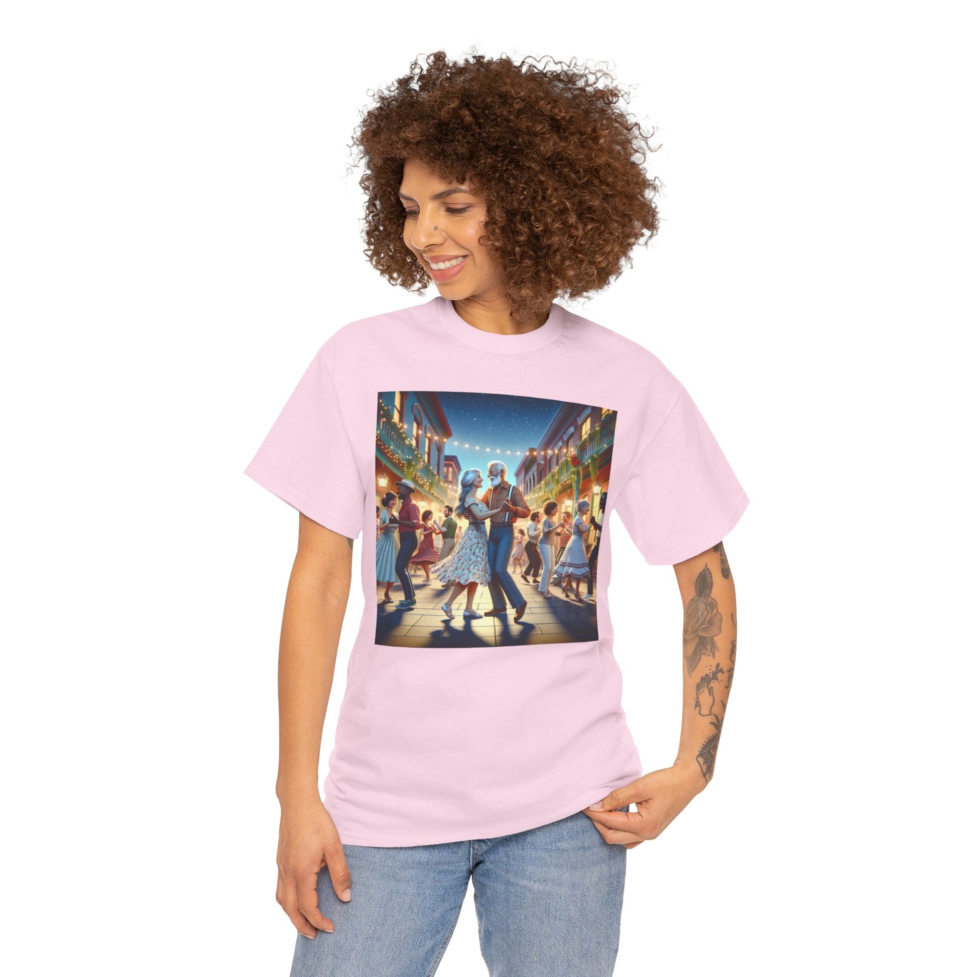 Introducing this Unisex Heavy Cotton Tee, perfect for anyone looking for a blend of comfort and style. This tee captures a vibrant atmosphere, making it ideal for casual outings, outdoor events, or simply lounging at home. With its classic fit and timeless crew neckline, it's versatile enough to mix and match with your favorite jeans or shorts. This product is excellent for adults who appreciate a relaxed yet polished look for gatherings, parties, or even everyday wear. It's a great gift option for holidays and celebrations like birthdays, summer picnics, and family reunions, as it resonates with those who enjoy expressing their personality through fashion. Vibrant Dance Night Unisex Cotton Tee, Cool Casual Wear, Party Shirt, Gift for Dance Lovers, Summer Vibes T-Shirt
