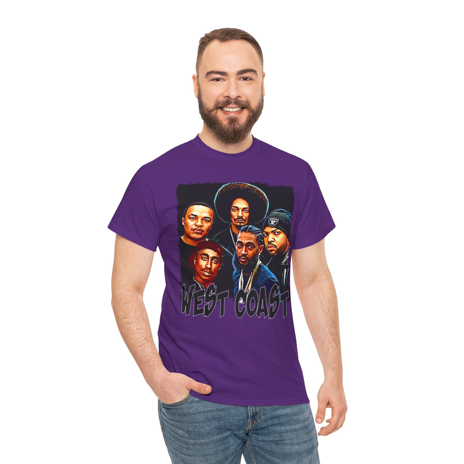 Introducing this Unisex Heavy Cotton Tee, a perfect blend of comfort and style that’s ideal for any casual or semi-formal occasion. The vibrant graphic print captures attention, making it a standout piece in your wardrobe. This versatile tee is perfect for street style enthusiasts, music lovers, and anyone who appreciates unique designs. Whether you're enjoying a relaxed day out with friends, attending a concert, or celebrating a special occasion, this tee fits seamlessly into your lifestyle. It's a great gift for holidays, birthdays, or just because, making it a wonderful addition to any collection. West Coast Hip Hop Unisex Heavy Cotton Tee
