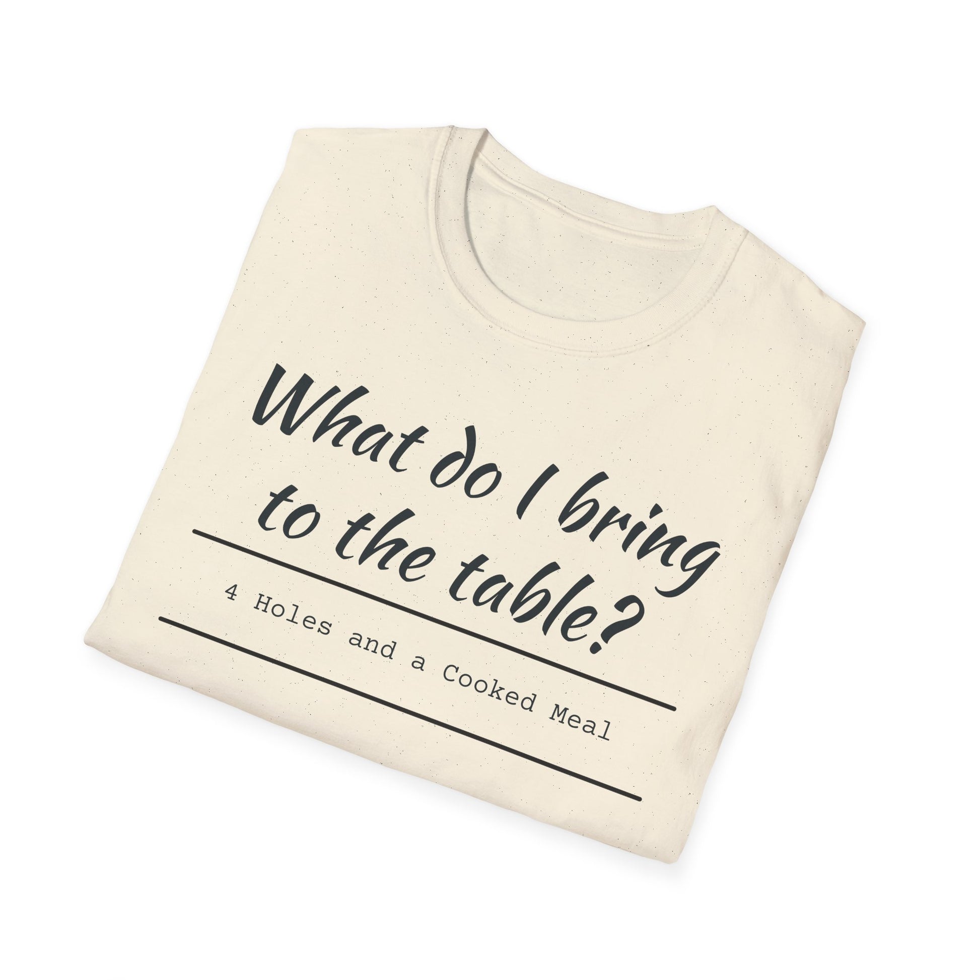 Experience comfort and style with this Unisex Softstyle T-Shirt, perfect for expressing your personality and sparking conversations. This versatile tee fits seamlessly into casual outings, family gatherings, or cozy nights in. Its smooth, lightweight fabric feels delightful against the skin, making it ideal for year-round wear. This shirt appeals to individuals who value comfort and style, and it’s a great gift for friends or family during holidays, birthdays, or just because. Celebrate food, friends, and laughter with a fun slogan that resonates at dinner parties and gatherings. Humorous Unisex Softstyle T-Shirt - Dinner Party, Chef Gift, Funny Cooking Tee, Kitchen Apparel, Food Lover T-Shirt